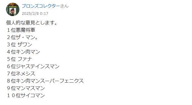 Yahoo!知恵袋においてもキン肉マンの強さランキングについての回答がありました。